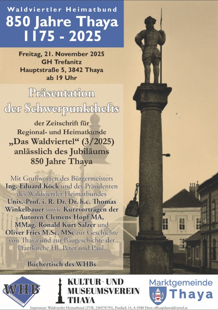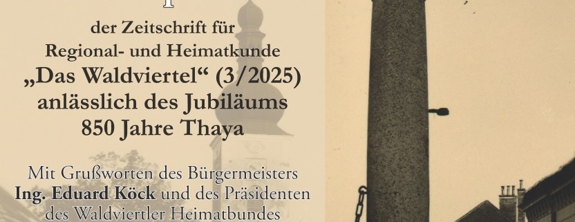 2025 feiert die Marktgemeinde Thaya ihr 850-jähriges Bestehen. Die Zeitschrift „Das Waldviertel“ gratuliert mit einer Schwerpunktausgabe.